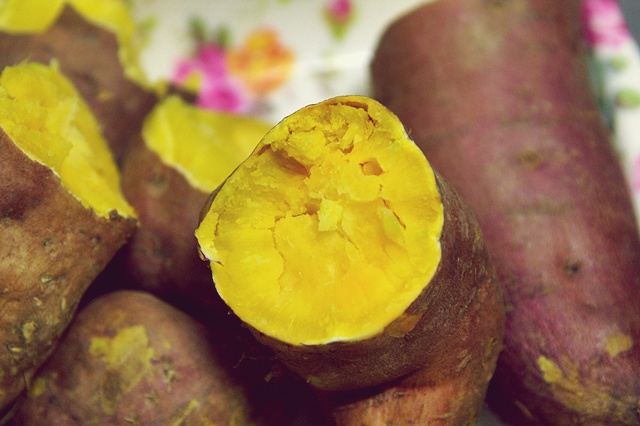 고구마에는 비타민 C가 많이 들어 있어 숙변을 없애주며 얼굴에 죽근깨나 기미 등을 관리해 준다.