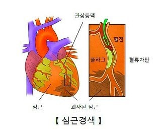 심장에는 3개의 심장 혈관이 있고 이를 통해 산소와 영양분을 받는다. 이 3개의 관상동맥 중 한가지라도 혈전이나 혈관의 빠른 수축에 의해 막히는 그럴 경우 심장에 산소와 영양 공급이 줄어들며 근육이나 조직, 세포가 죽는 상황이 되는데 이를 심근경색이라고 해요. 즉 심장과 연결된 혈관이 막혀서 심장으로 피가 가지 못해 심장에 이상이 발생되는 것을 해요.