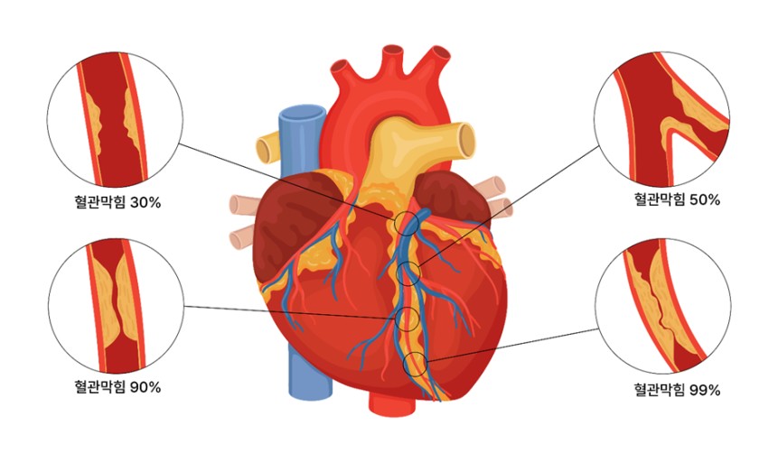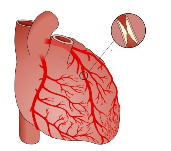 혈관에 지방이 모이게 되면서 들어붙어 동맥이 좁아지고 탄력을 잃게 되는 것으로, 주로 콜레스테롤이나 중성지방이 쌓이게 되면서 혈관의 탄력이 감소하고 혈전이 발생되는 등 동맥이 좁아지는 현상인데요 일반적으로 노화현상의 하나로 동맥경화증이 발생하는데, 그로 인해 혈액이 심장으로 들어가는 것을 막기 그리해서 심장 근육이 괴사 되면서 질환을 발생시킨다. 심장은 다양한 혈관으로 연결되어 있으므로 소화불량, 치통, 어깨와 목 근육통으로 초기증상을 느낄 수 있다.